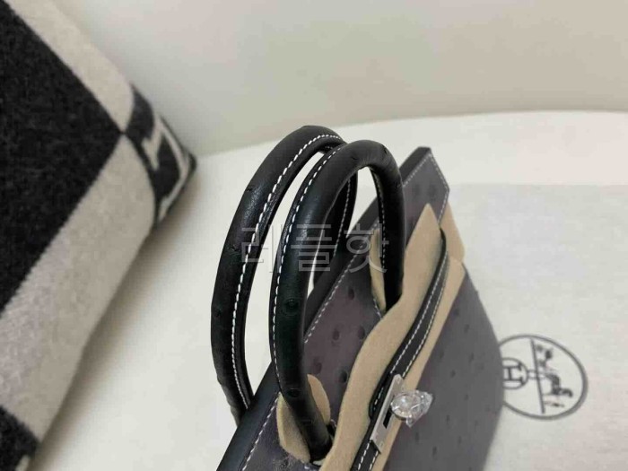 Hermès Birkin 25 Ostrich Agate Grey & Noir x Palladium Hardware > BIRKIN