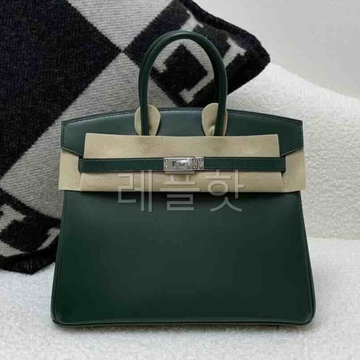 • Hermès Birkin 25cm Box Vert Fonce x Palladium Hardware