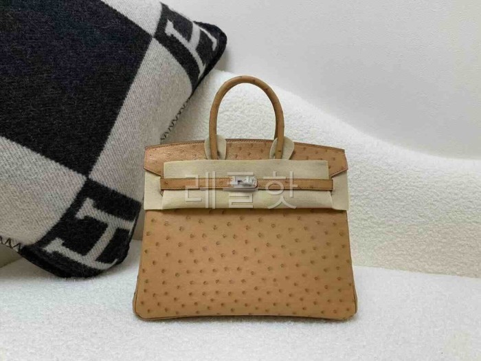 • Hermès Birkin 25 Ostrich Gold x Palladium Hardware