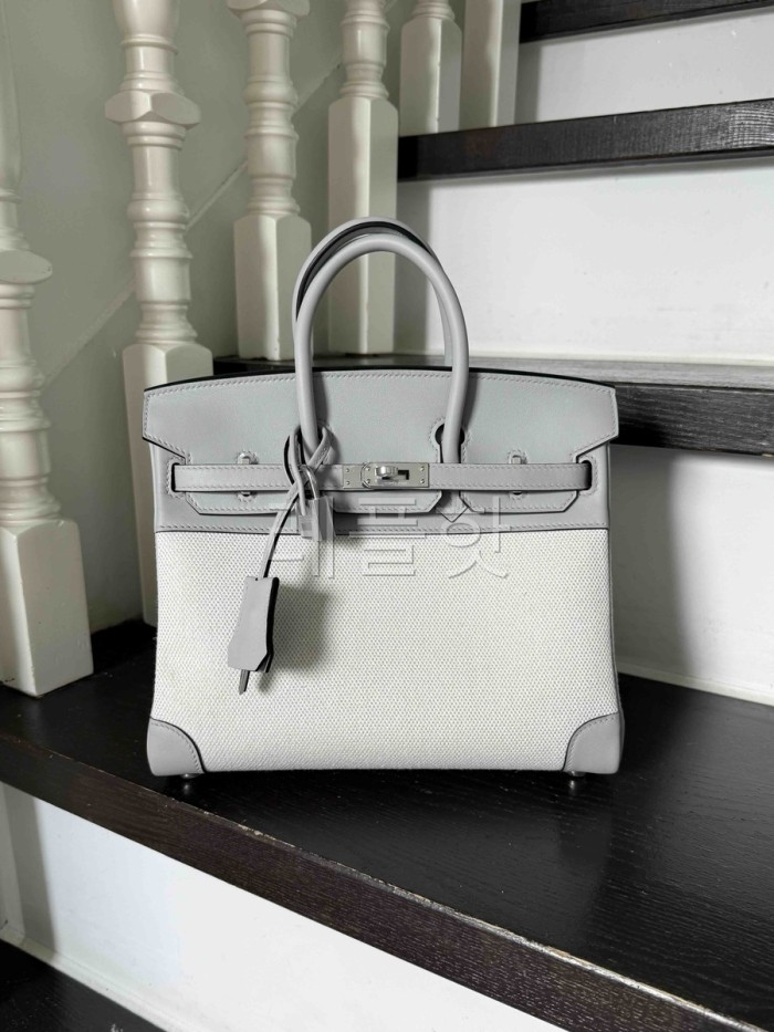 • HERMÈS Birkin 25 Bleu Glacier (8U) Swift Toile H canvas Palladium hardware