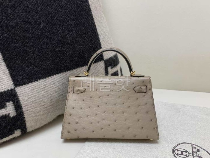 Hermès Kelly Mini II ostrich Gris Tourterelle x Gold hardware > KELLY