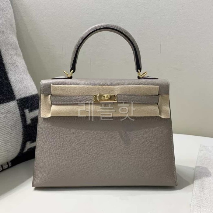 • Hermès Kelly 25 Sellier Epsom Gris Tourterelle x Gold Hardware