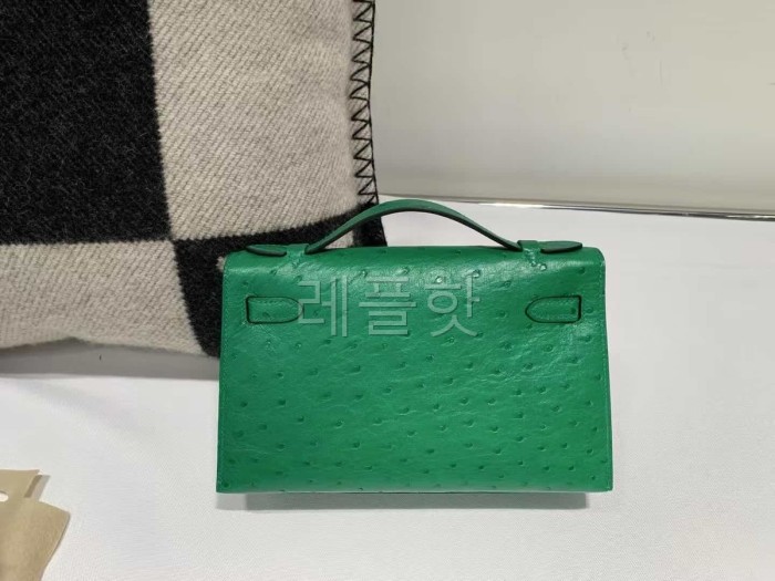 Hermès Mini Kelly I Velvet Green Ostrich – Palladium Hardware > KELLY