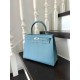 • Hermès Kelly25 Epsom Bleu Jean x Palladium Hardware