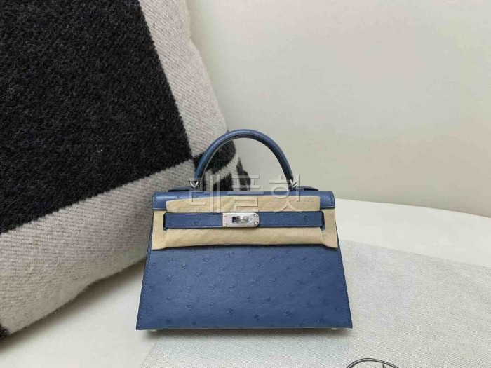 • Hermès Mini Kelly II Ostrich Agate Blue x Palladium Hardware