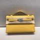 • Hermès Kelly Pochette Swift Jaune de Naples x Palladium Hardware