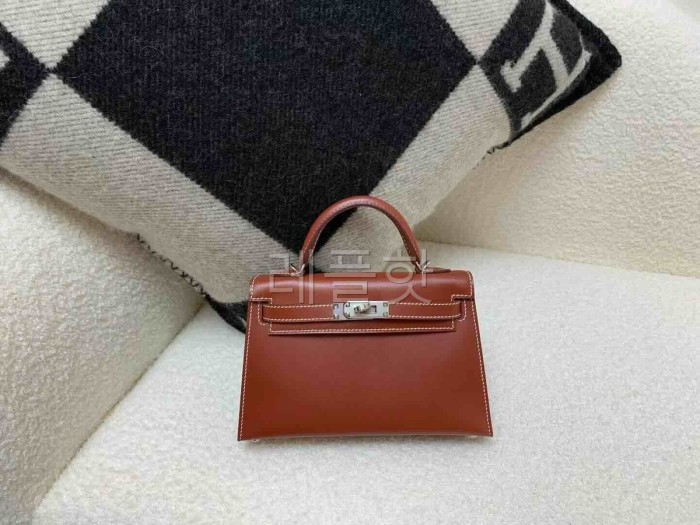 Hermès Mini Kelly II Box Brick Red x Palladium Hardware > KELLY
