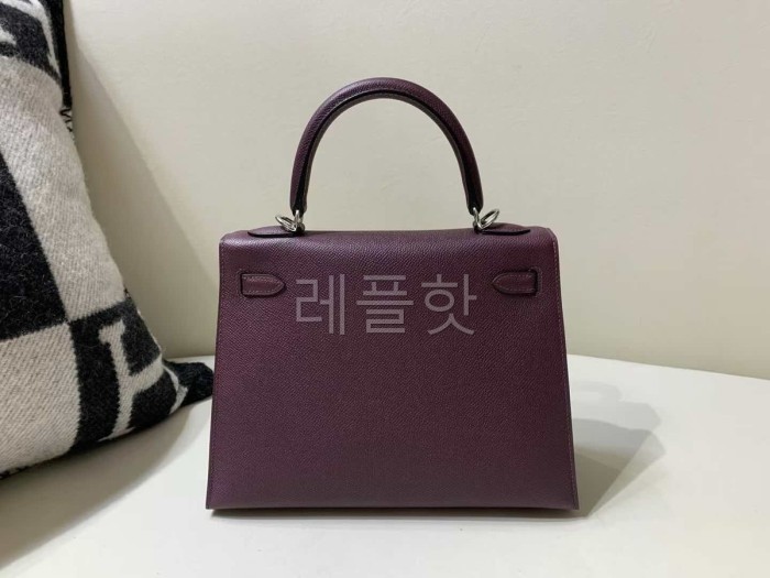 • Hermès Kelly 25 Epsom Sellier Raisin x Palladium Hardware