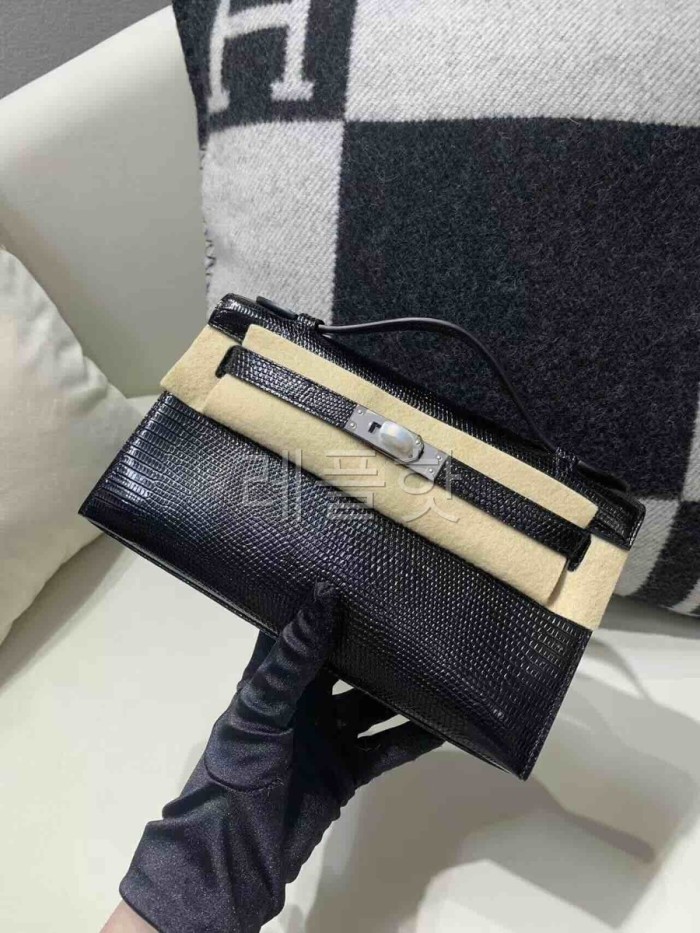 Hermès Kelly Pochette Lizard Noir x Palladium Hardware > KELLY