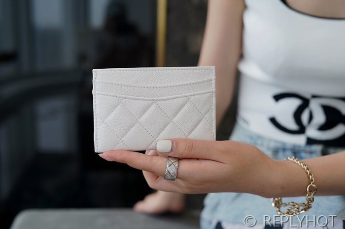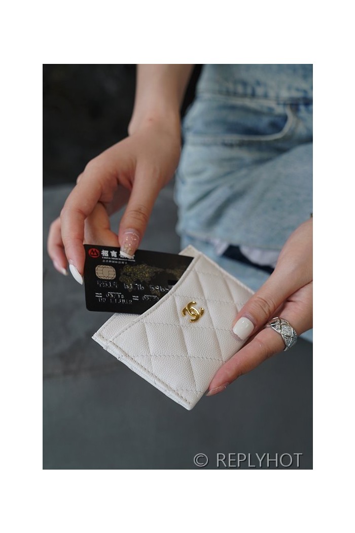 샤넬 클래식 카드 지갑 카프스킨 골드메탈 화이트 [매장가 70만원대]