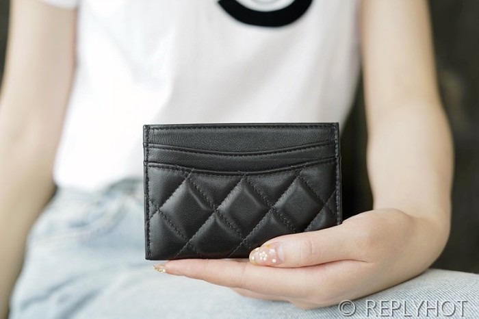 샤넬 클래식 카드 지갑 램스킨 골드메탈 블랙 [매장가 70만원대]