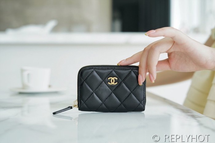 샤넬 클래식 지퍼 동전 지갑 램스킨 골드메탈 블랙 [매장가 94만원대]