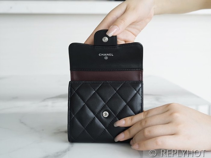 샤넬 클래식 스몰 플랩 지갑 램스킨 실버메탈 블랙 [매장가 170만원대]