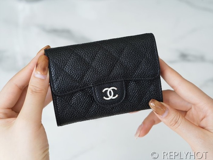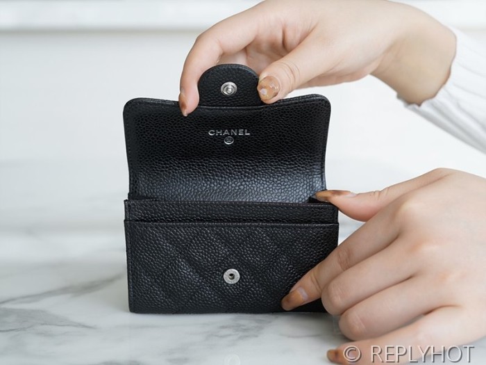 샤넬 클래식 카드 홀더 지갑 카프스킨 실버메탈 블랙 [매장가 150만원대] > 지갑