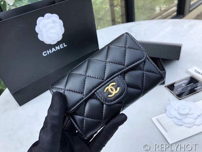 샤넬 클래식 카드 홀더 지갑 램스킨 골드메탈 블랙 [매장가 150만원대]