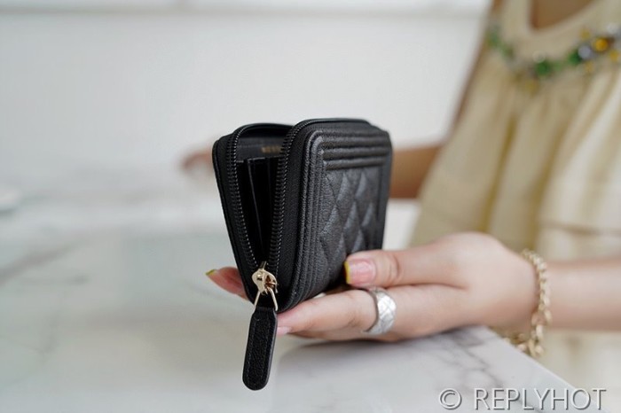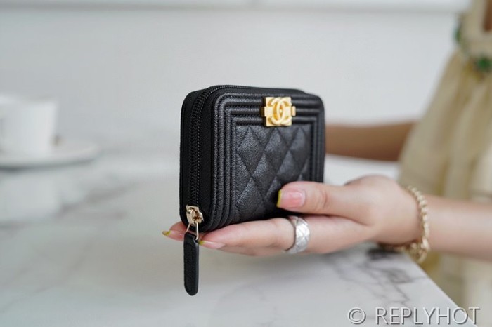 샤넬 보이 지퍼 카드 지갑 카프스킨 골드메탈 블랙 [매장가 100만원대]