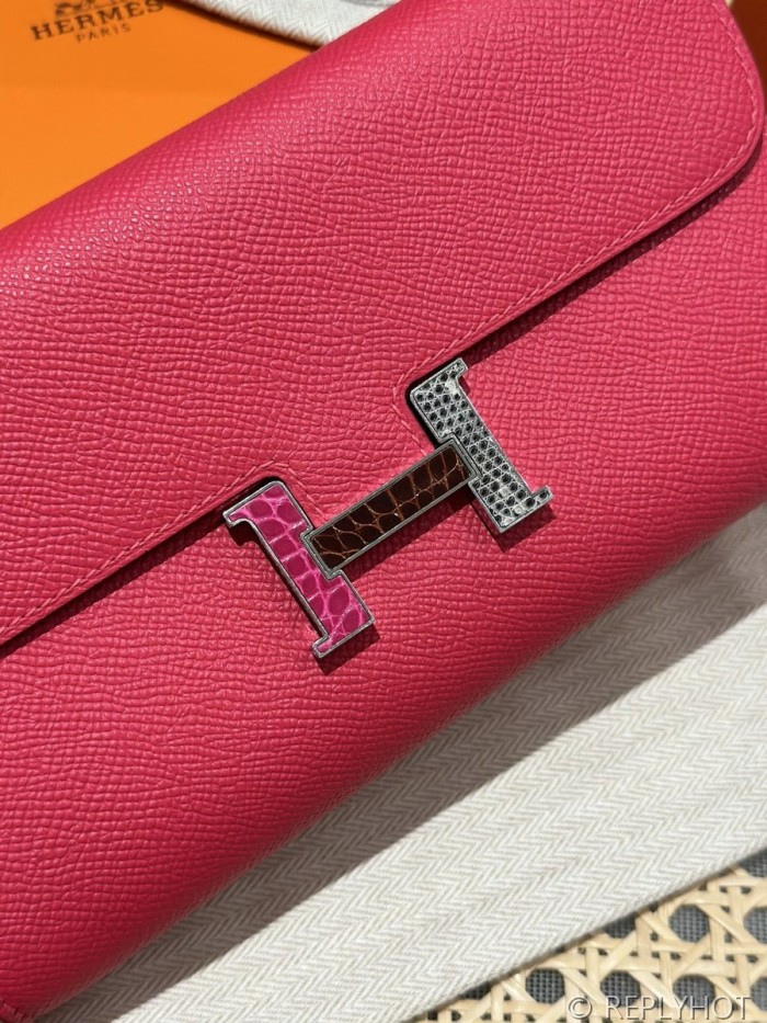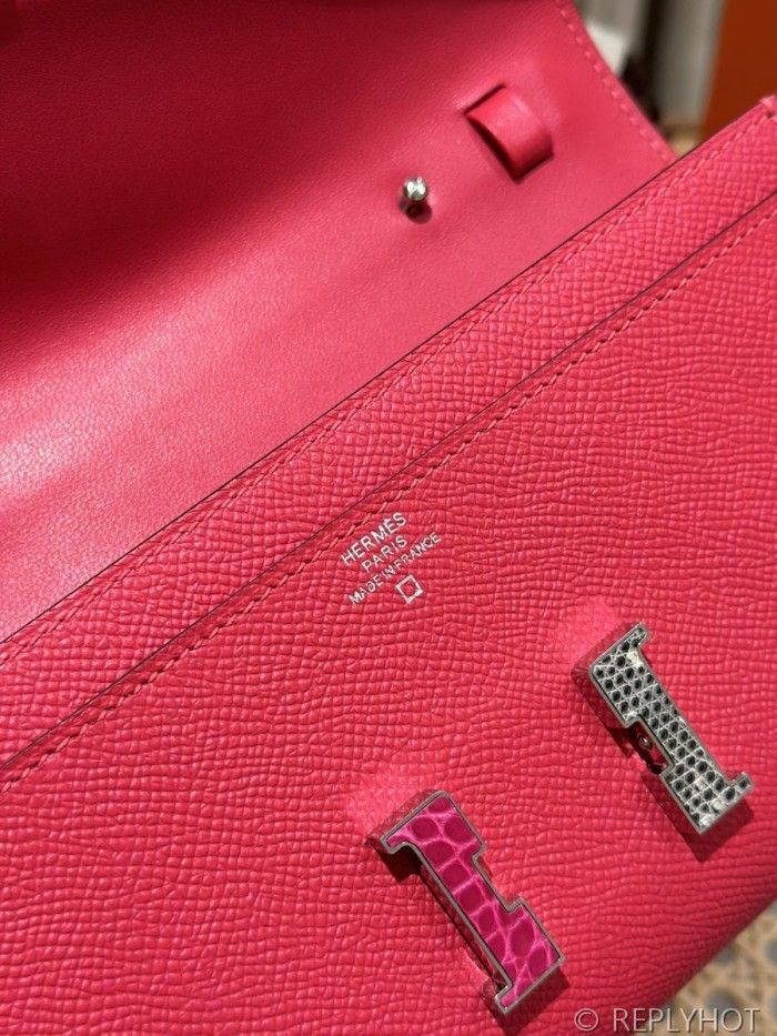 [하이엔드급] 에르메스 콘스탄스 투고 월렛 / I6 Rose extreme 리자드 악어 은장 [매장가 1290만원대]