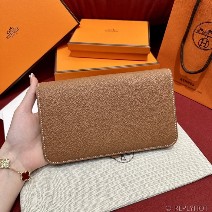 [하이엔드급] 에르메스 도곤 지갑 / CK37 브라운골드 토고 금장 [매장가 390만원대]