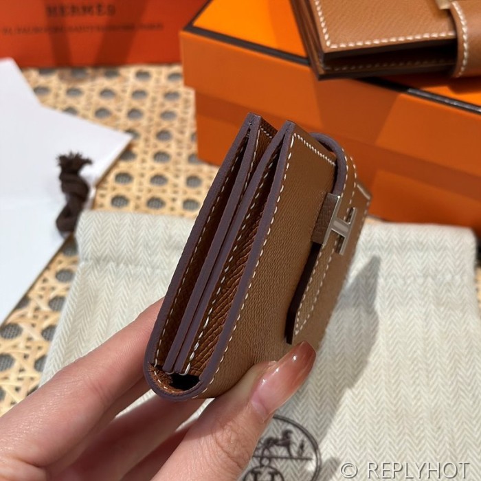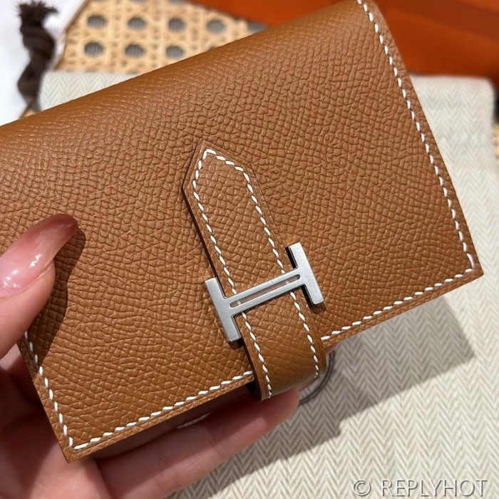 [하이엔드급] Hermes 에르메스 베안 카드 홀더 지갑 Bearn Card Holder Wallet / CK37 브라운골드 엡솜 은장