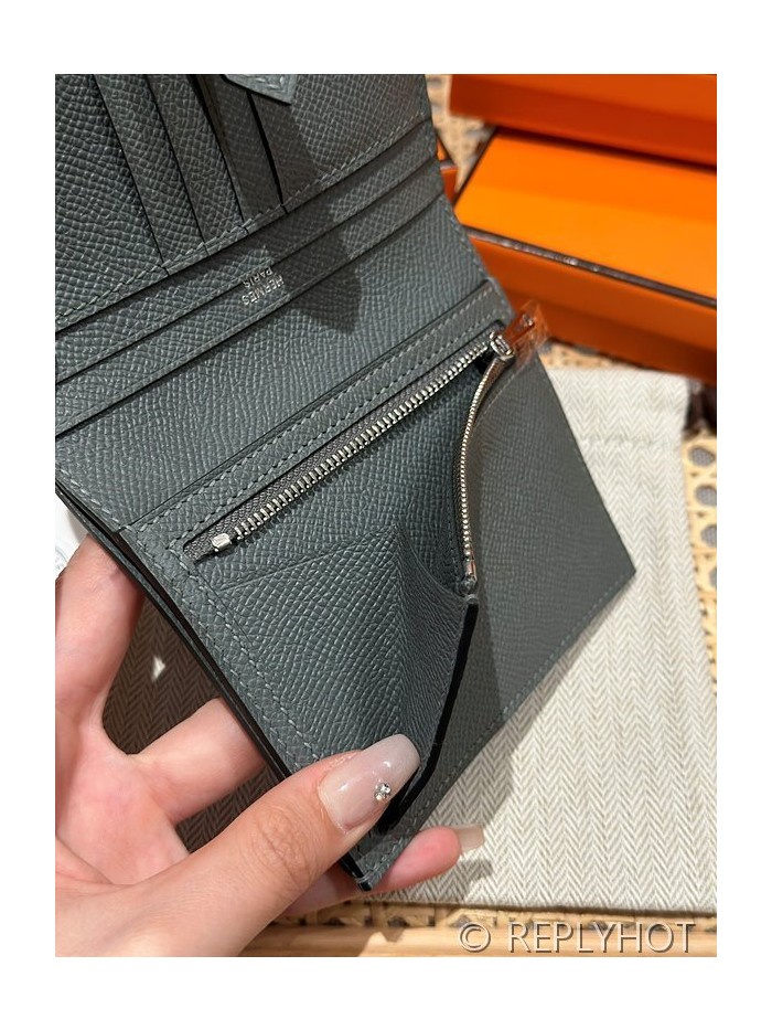 [하이엔드급] Hermes 에르메스 베안 컴팩트 지갑 Bearn Compact Wallet / 63 아몬드그린 Vetr Amande 엠솜 은장 [매장가 385만원대]