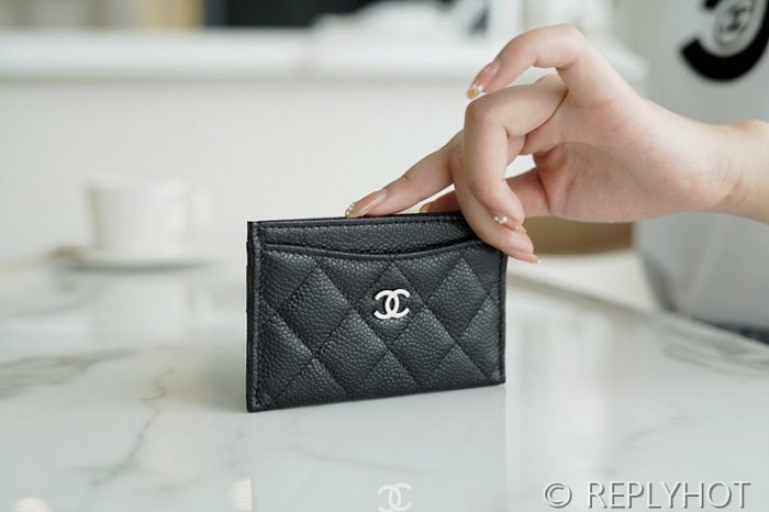샤넬 클래식 카드 지갑 카프스킨 실버메탈 블랙 [매장가 70만원대] > 지갑