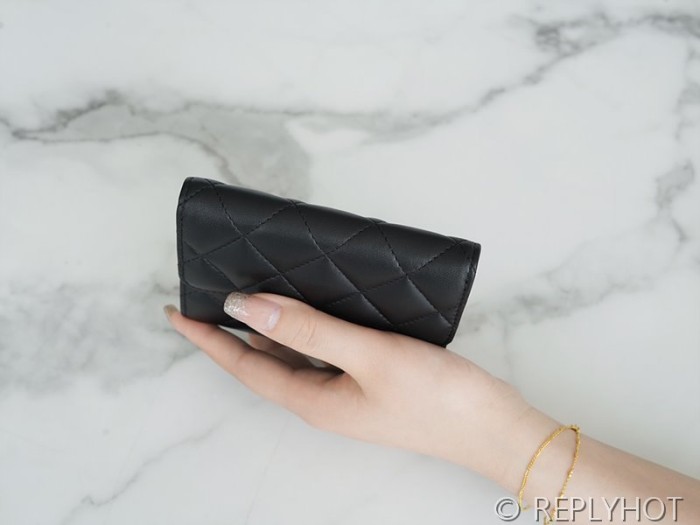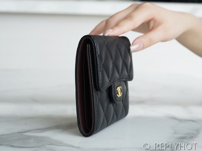 샤넬 클래식 스몰 플랩 지갑 램스킨 골드메탈 블랙 [매장가 170만원대]