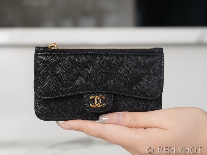 샤넬 클래식 지퍼 카드 홀더 카프스킨 골드메탈 블랙 [매장가 190만원대]