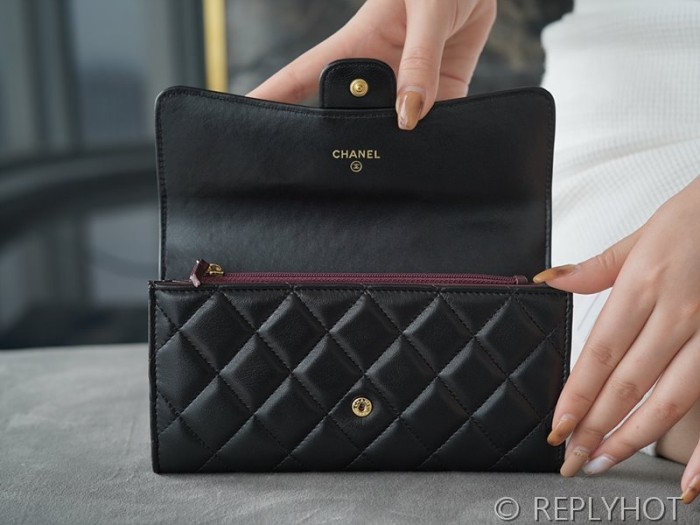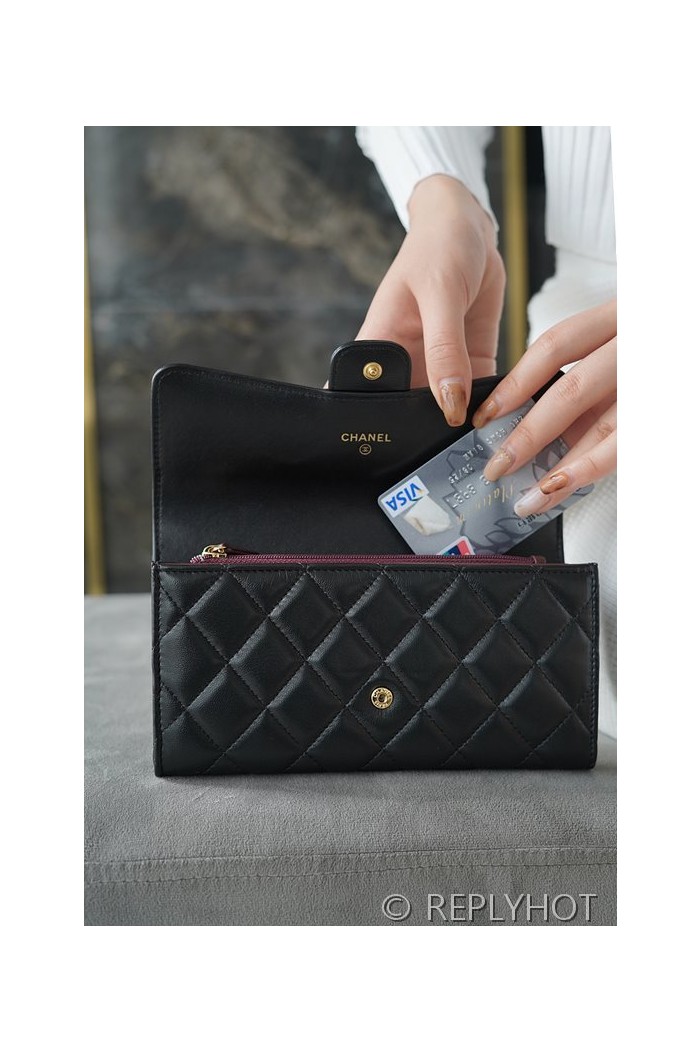 샤넬 클래식 장지갑 램스킨 골드메탈 블랙 [매장가 200만원대]