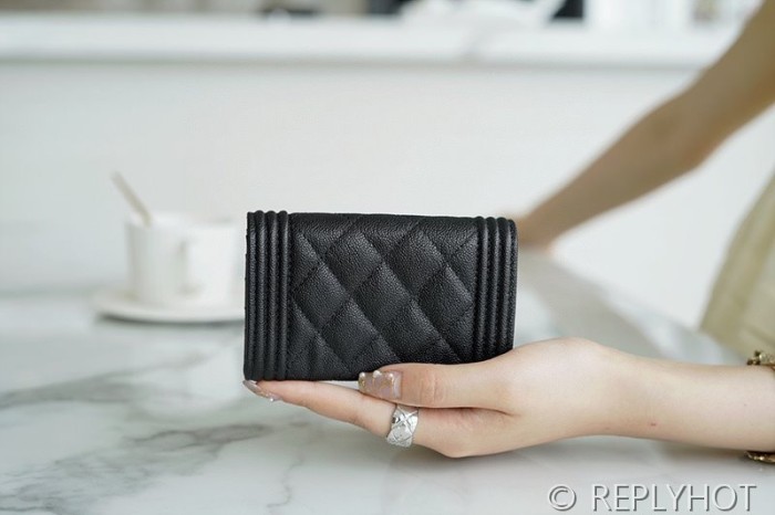 • 샤넬 보이 플랩 카드 홀더 카프스킨 골드메탈 블랙 [매장가 170만원대]