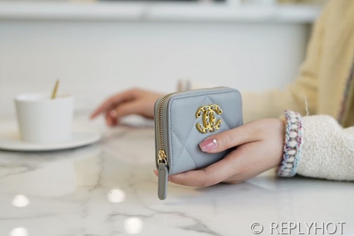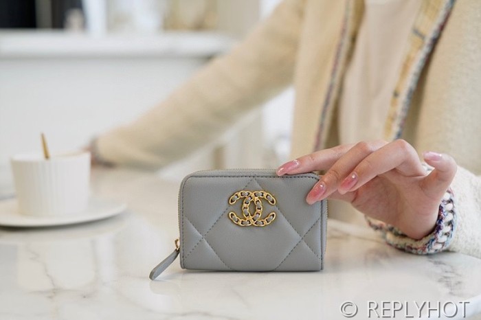 • 샤넬 19 동전 지갑 램스킨 골드메탈 그레이 [매장가 110만원대]