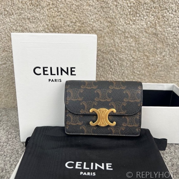 • 셀린느 플랩 트리옹프 카드 지갑-트리옹프 캔버스 탠 [매장가 60만원대]
