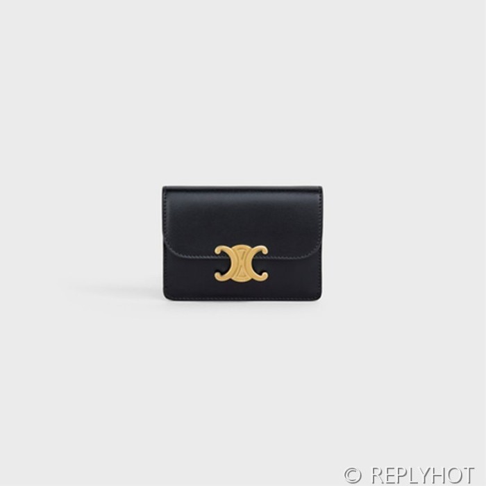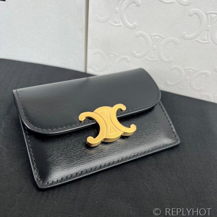 셀린느 플랩 트리옹프 카드 지갑-샤이니 카프스킨 블랙 [매장가 60만원대]