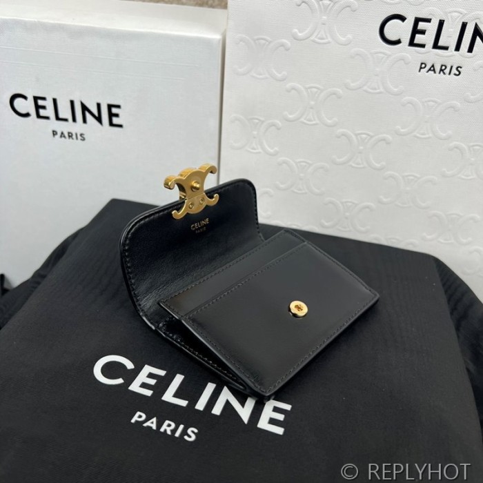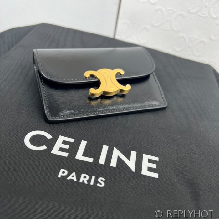 • 셀린느 플랩 트리옹프 카드 지갑-샤이니 카프스킨 블랙 [매장가 60만원대]