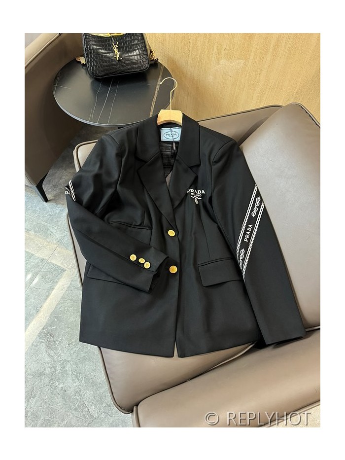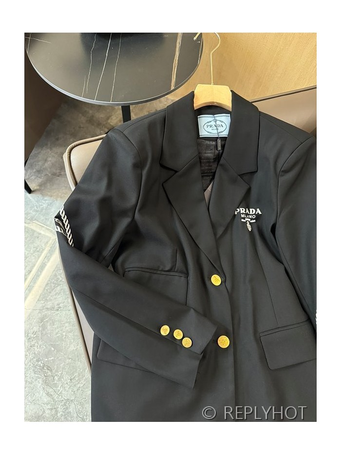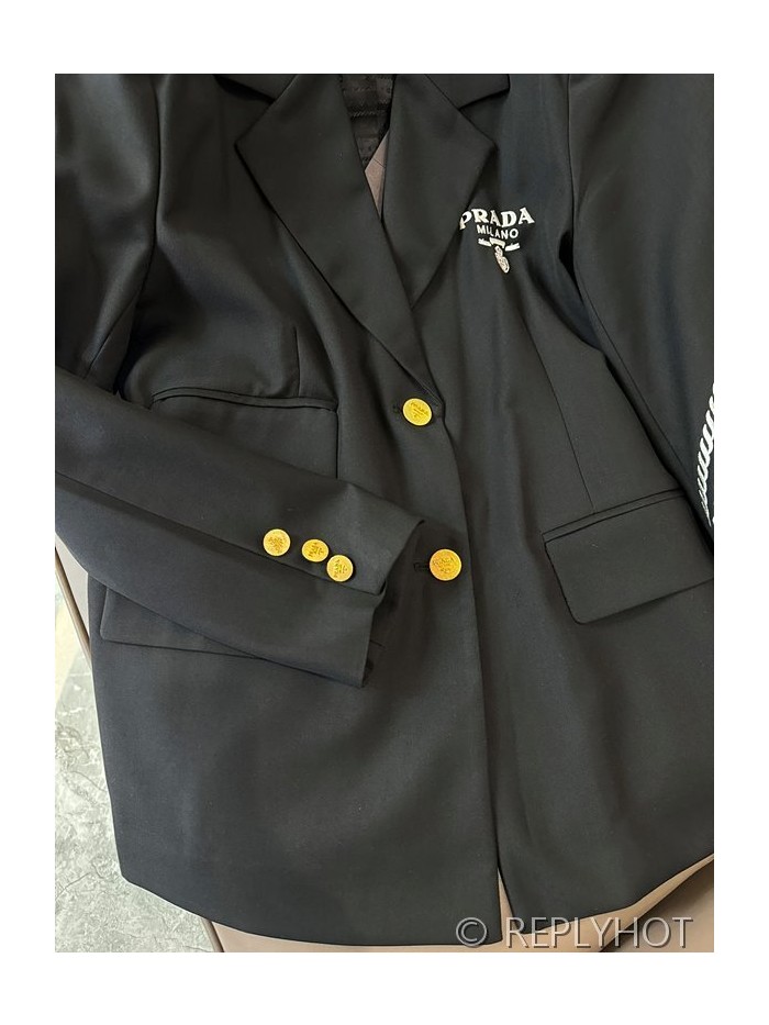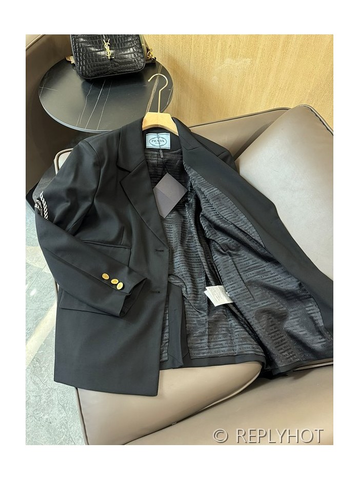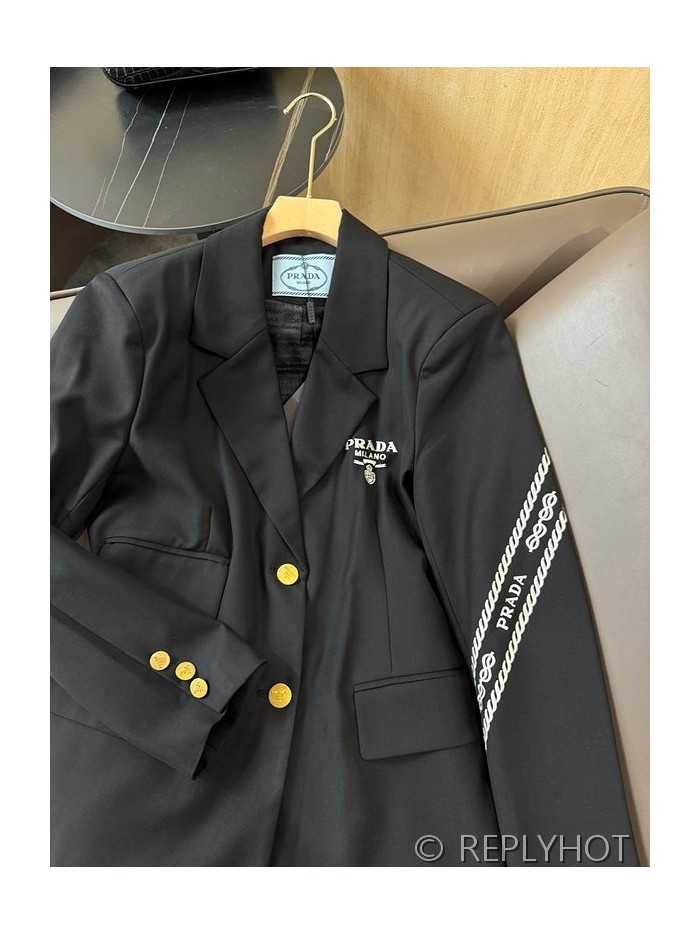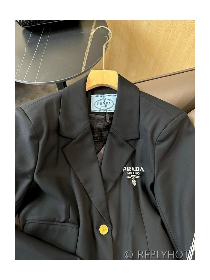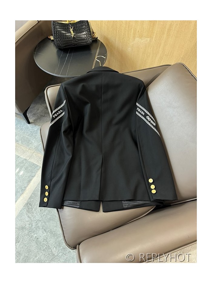 프라다 트라이앵글 로고 프린트 레터 슬리브 블레이저