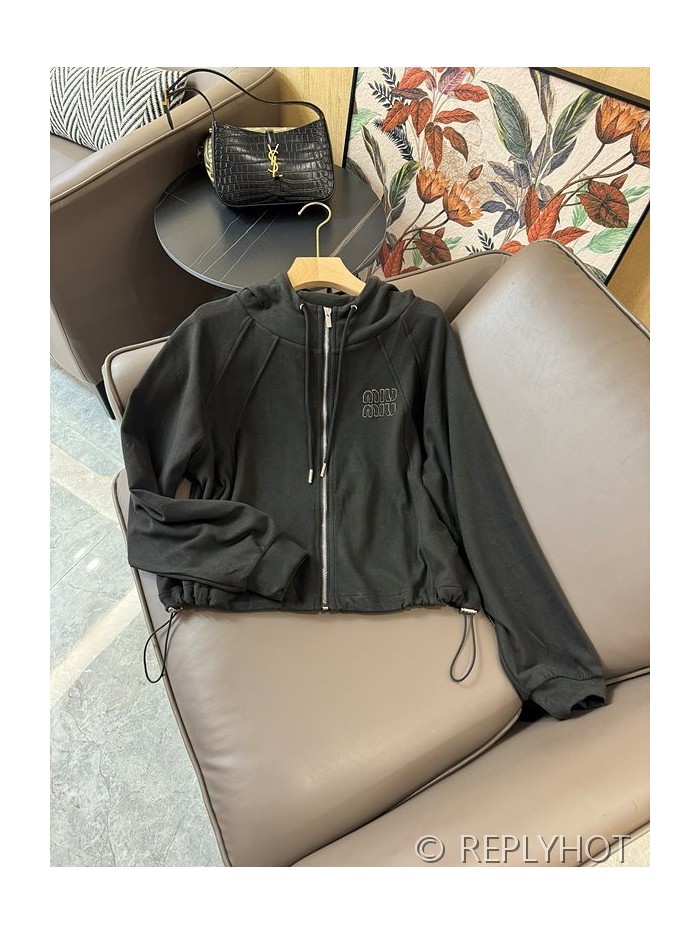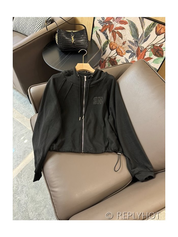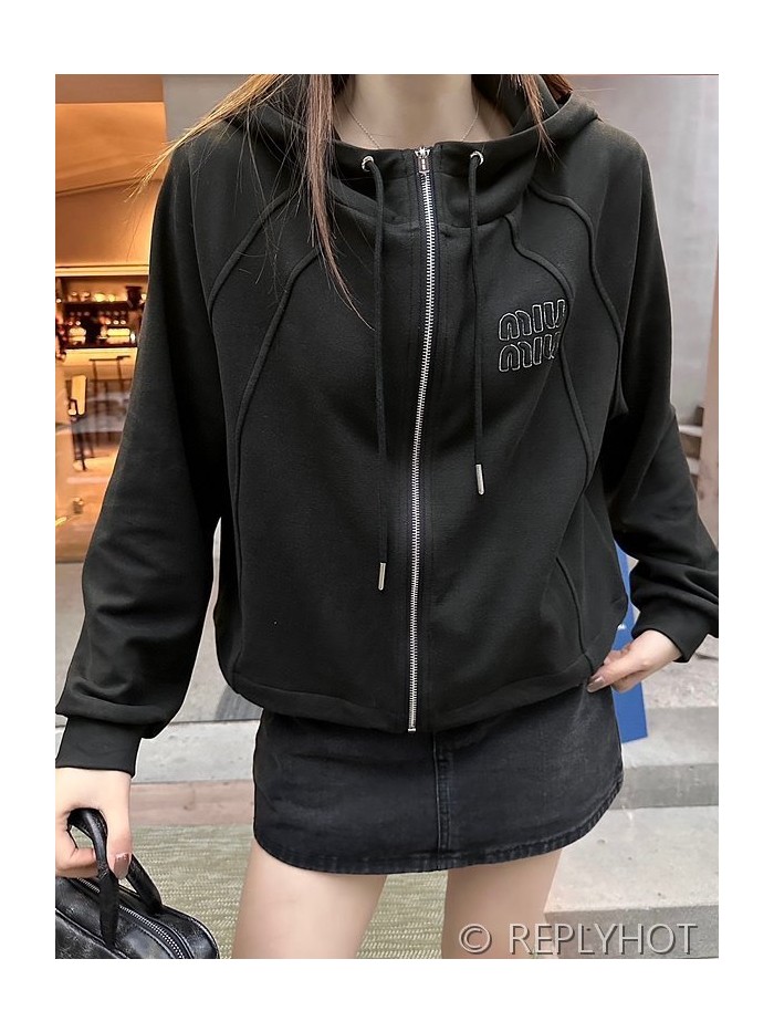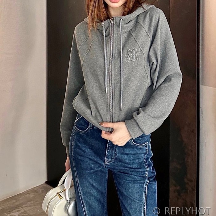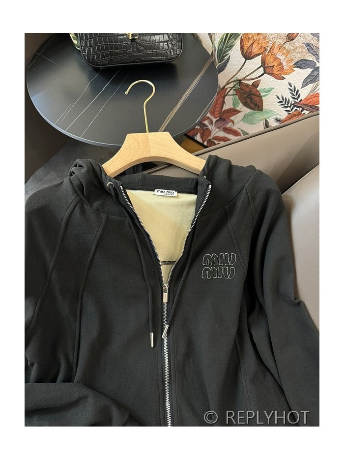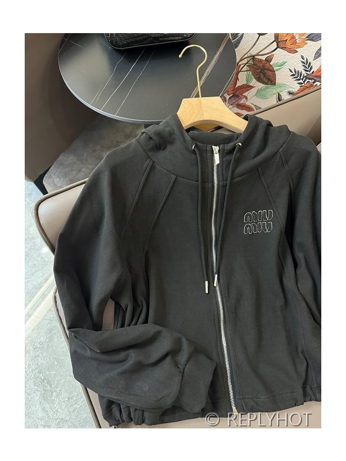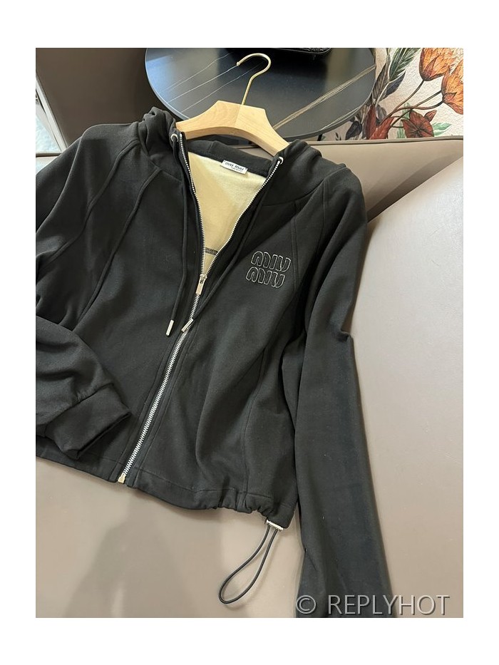 Miu miu 자수 로고 드로스트링 후드 집업 2color