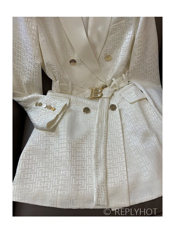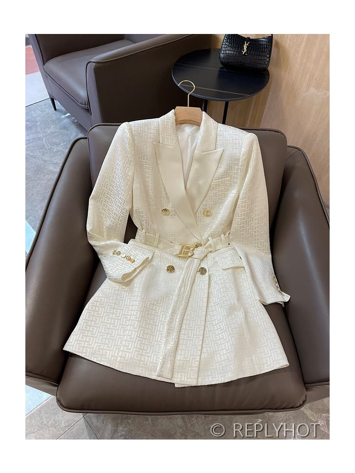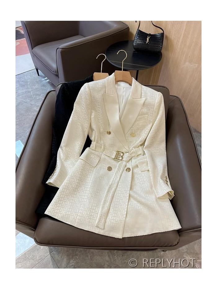 발망 더블 브레스트 자카드 레터 아세테이트 긴팔 드레스 자켓 > 발망