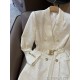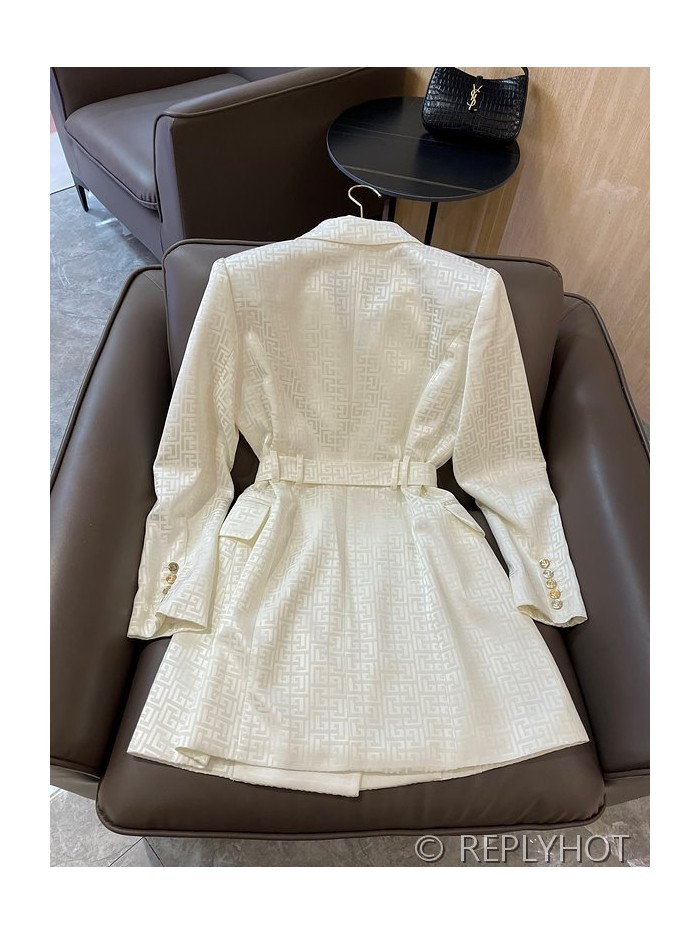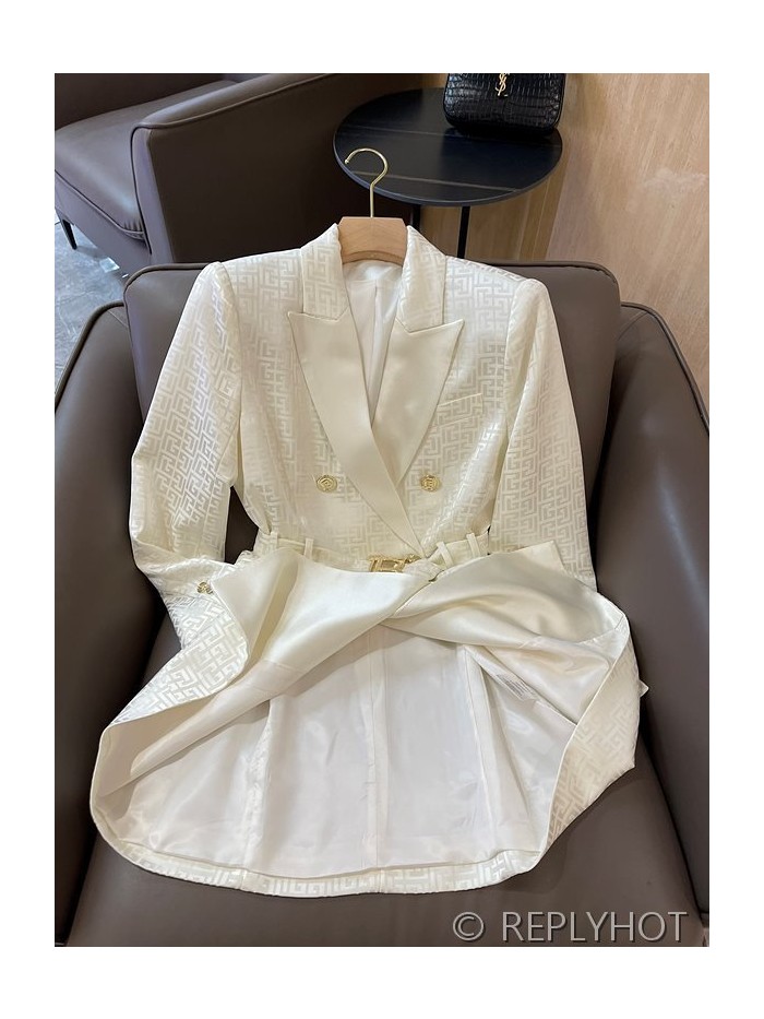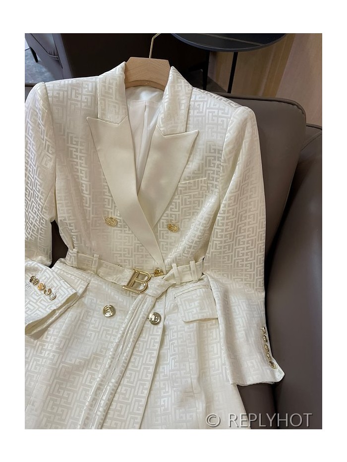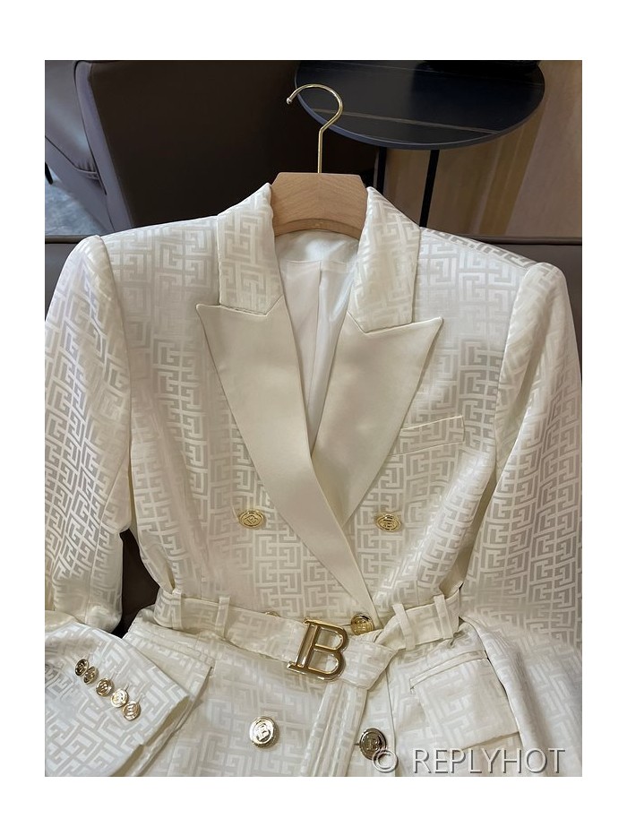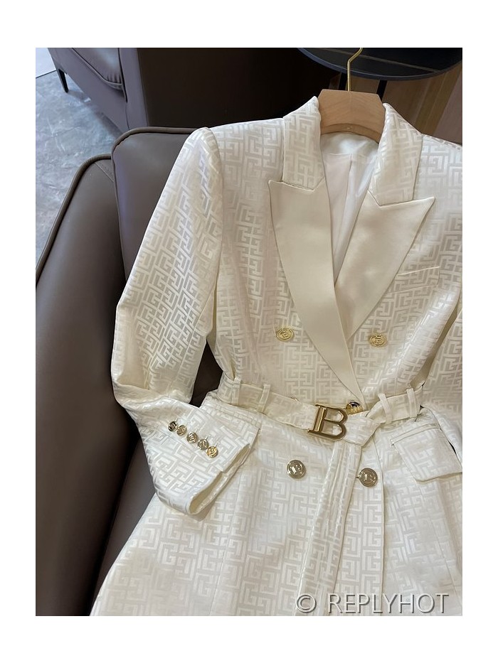 발망 더블 브레스트 자카드 레터 아세테이트 긴팔 드레스 자켓