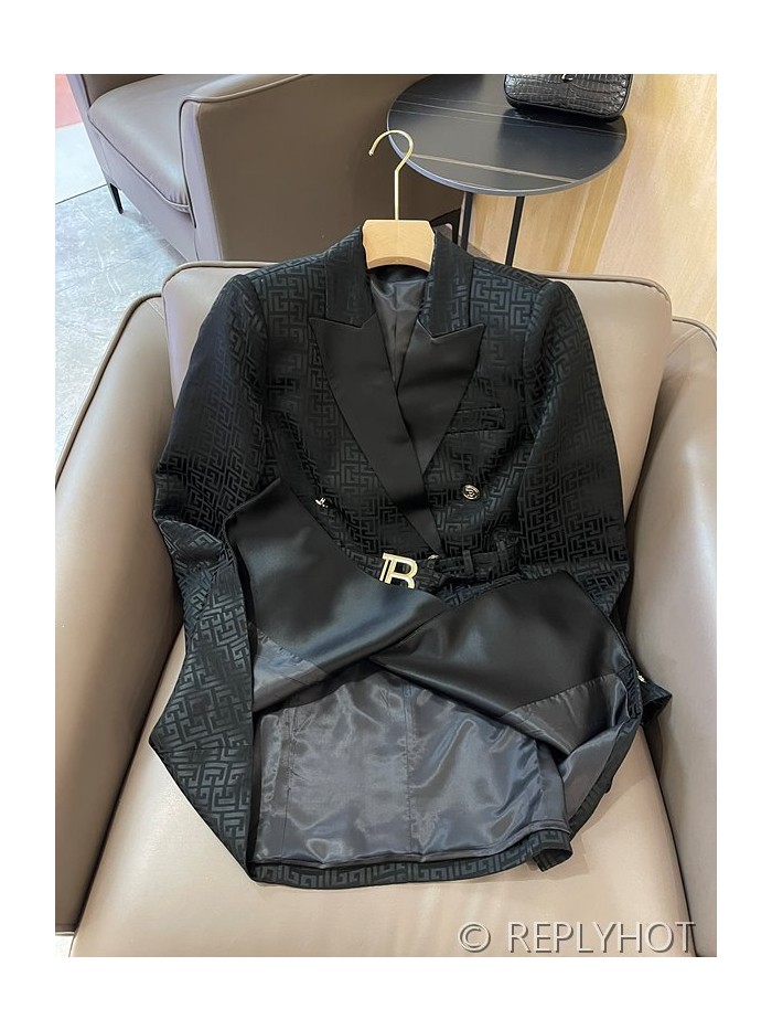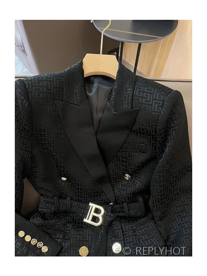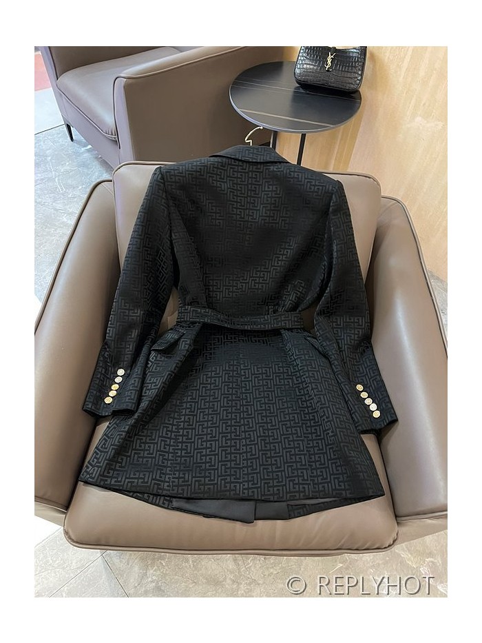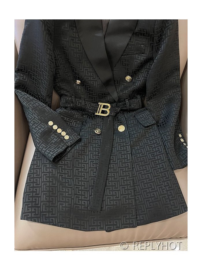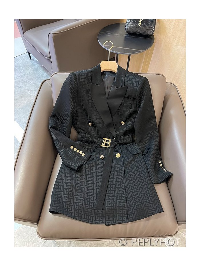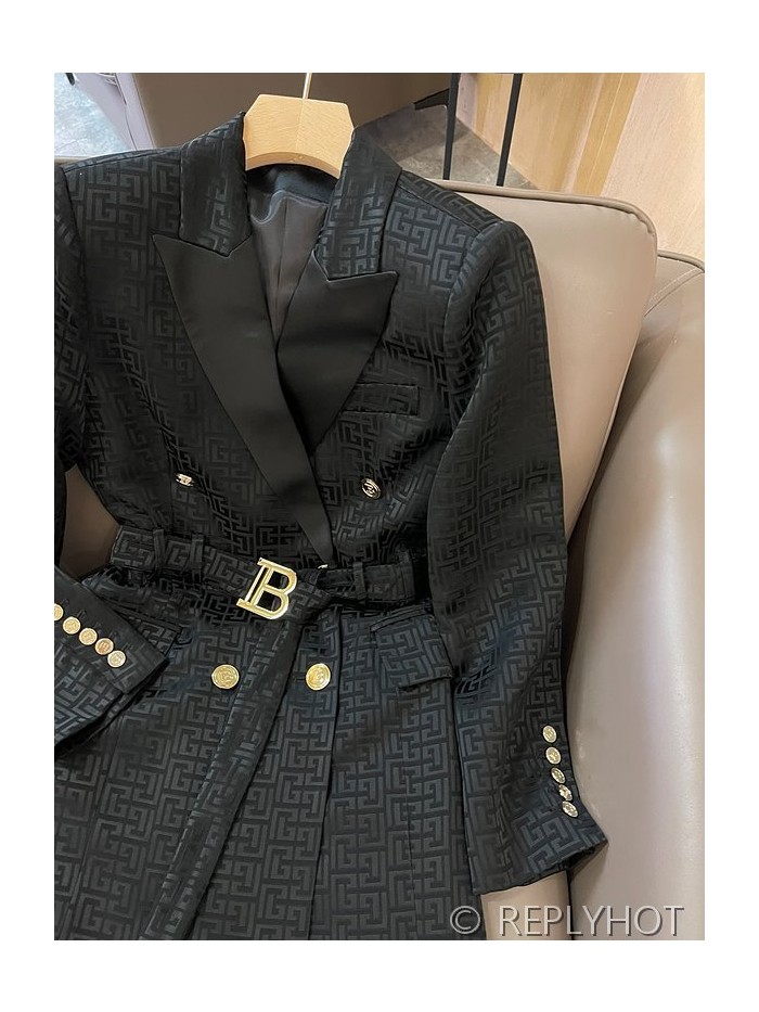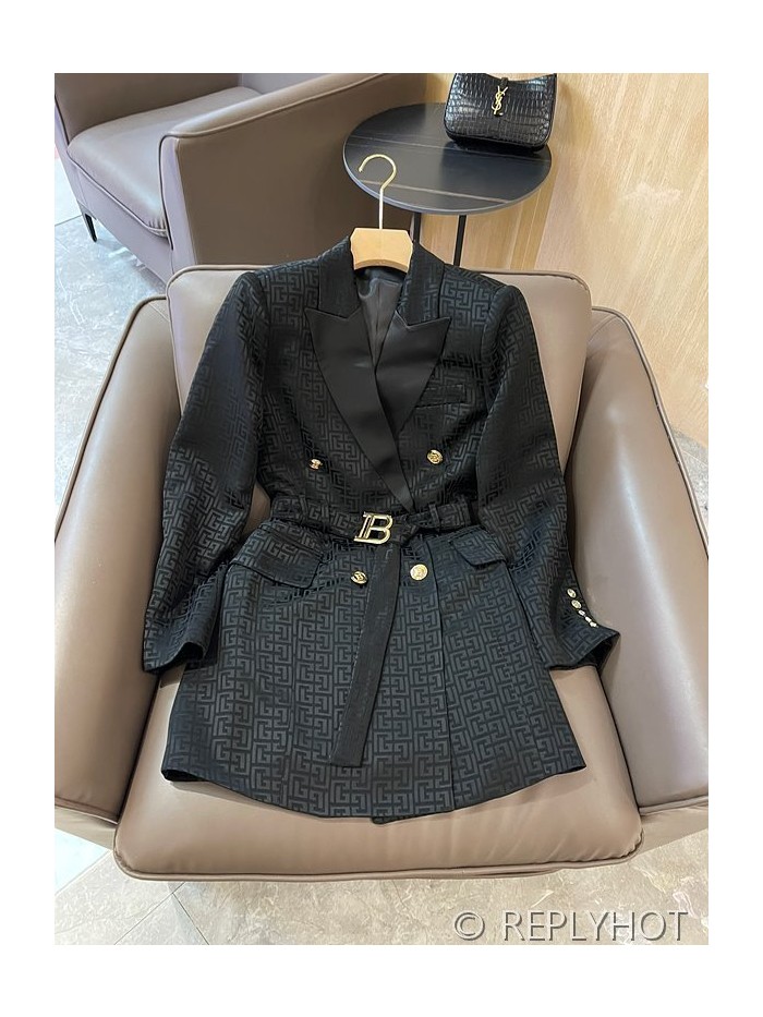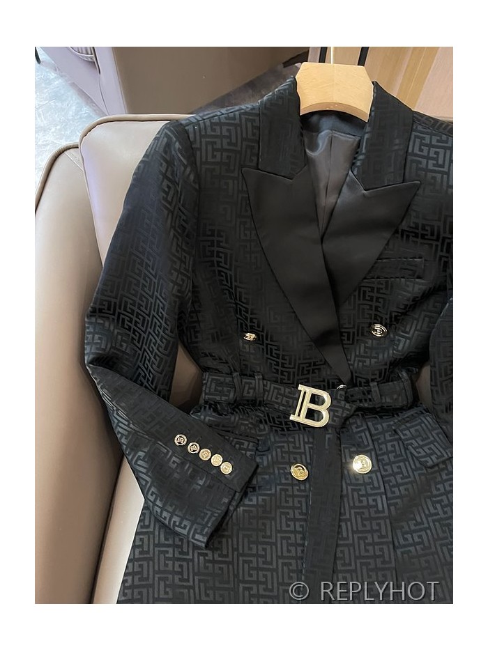 발망 더블 브레스트 자카드 레터 아세테이트 긴팔 드레스 자켓