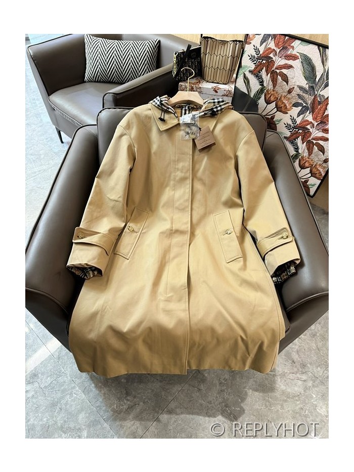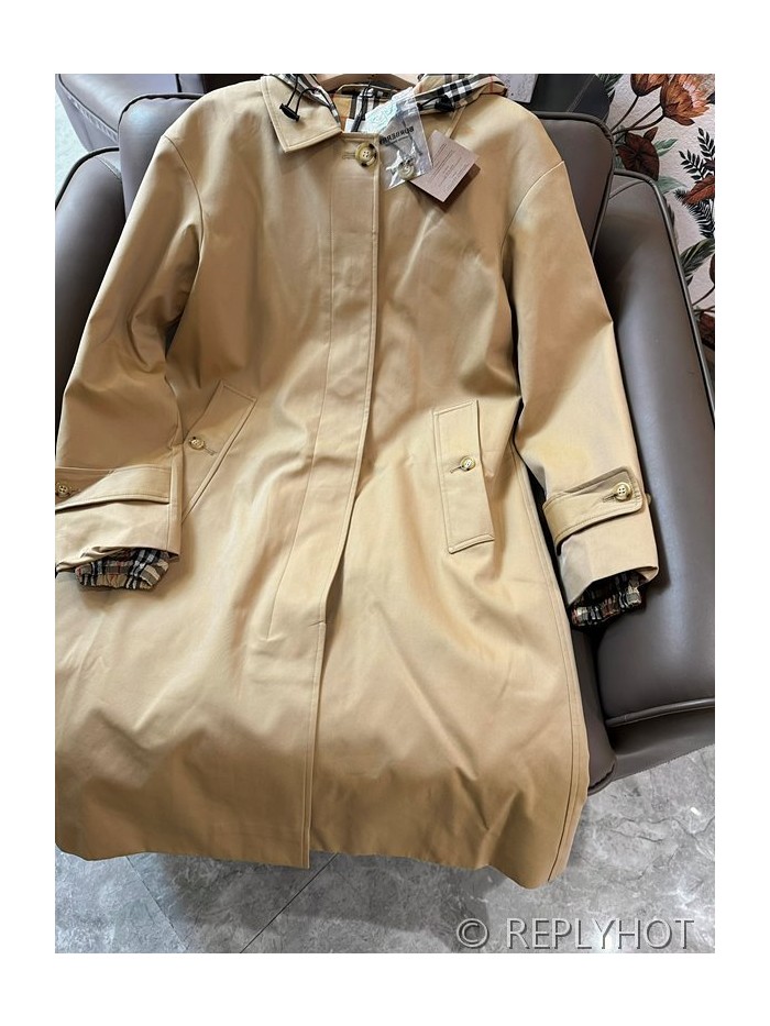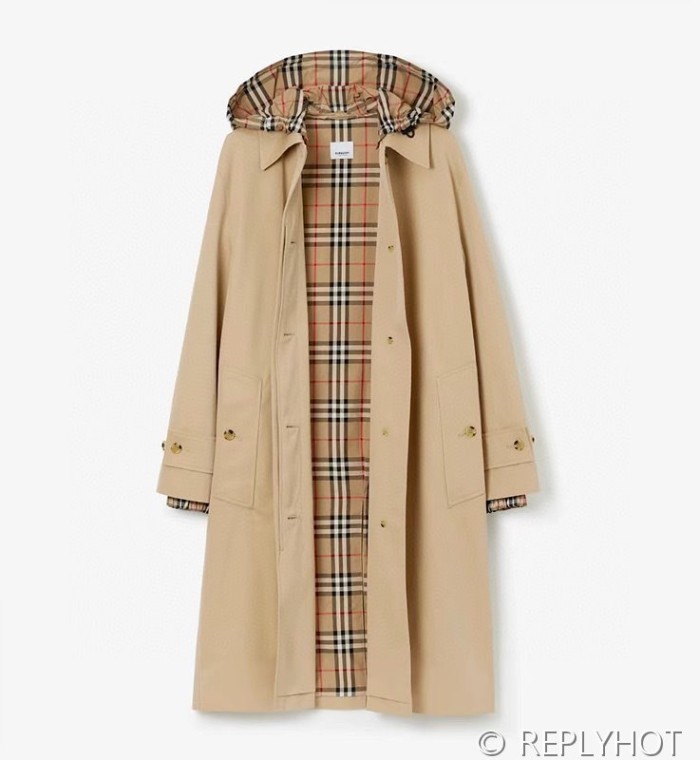 버버리 체크 안감 후드 트렌치코트 > 버버리