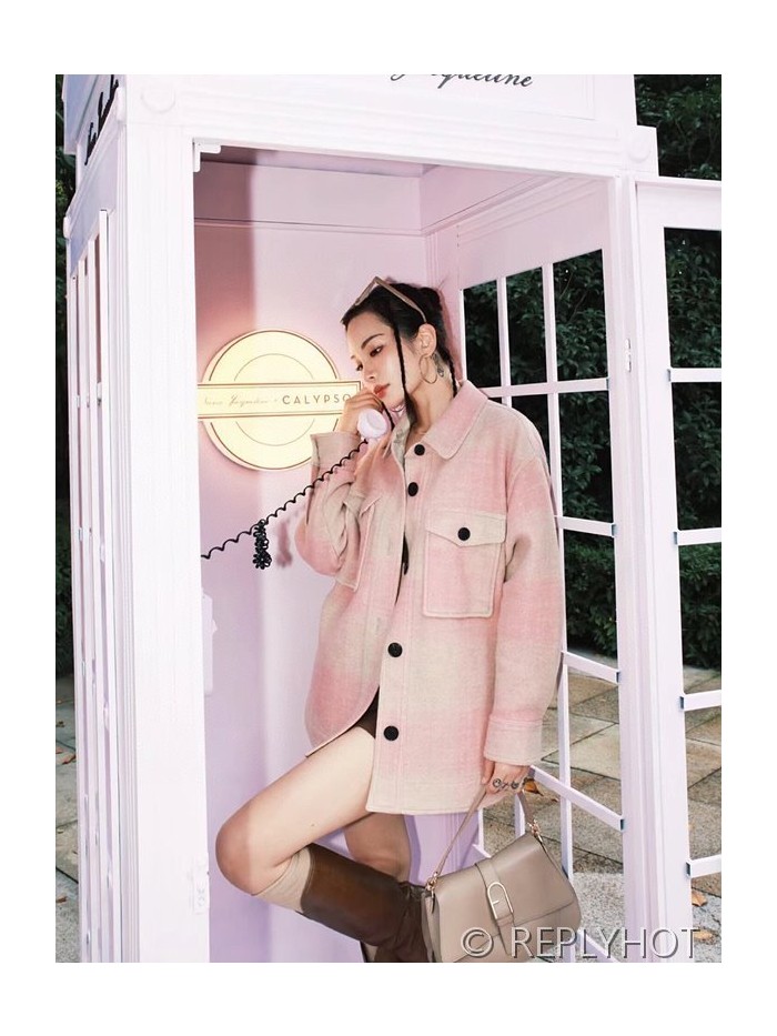 이자벨마랑 핑크 체크 패턴 울 셔츠 자켓 [매장가 90만원대] > 아우터