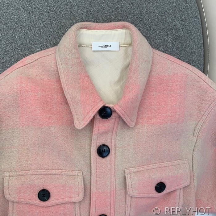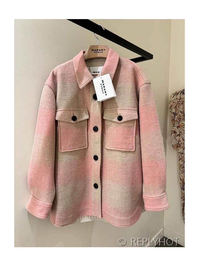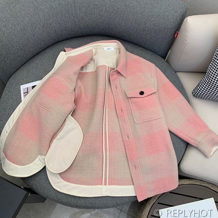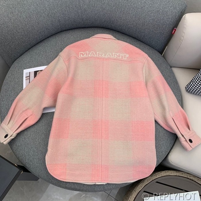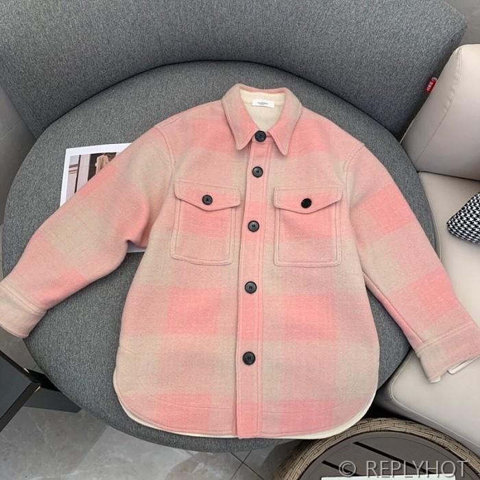 이자벨마랑 핑크 체크 패턴 울 셔츠 자켓 [매장가 90만원대]