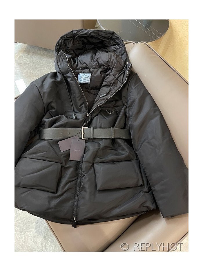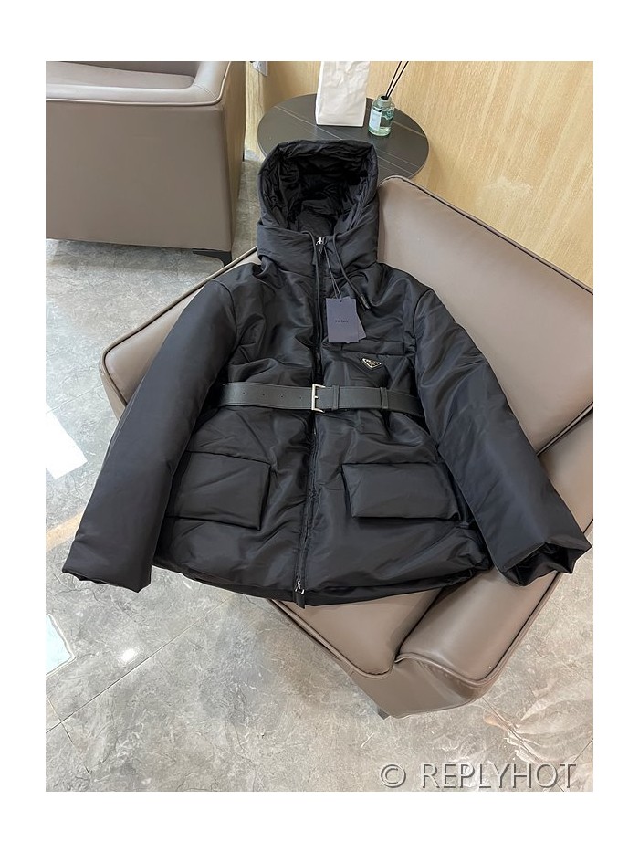 프라다 구스다운 벨트 숏패딩