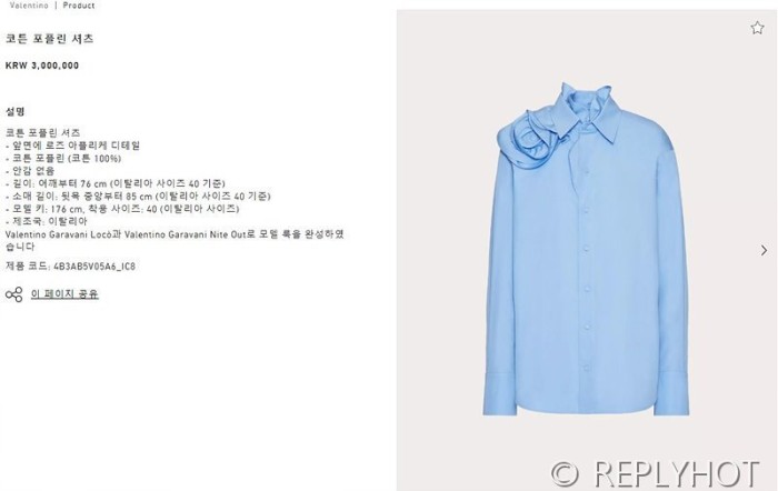 발렌티노 코튼 포플린 셔츠 3COLOR [매장가 350만원대] > 발렌티노