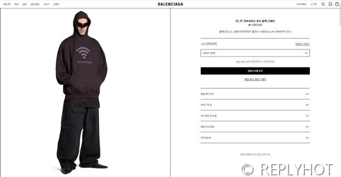 발렌시아가 LO_VE 오버사이즈 후디 블랙그레이 [매장가 149만원대]