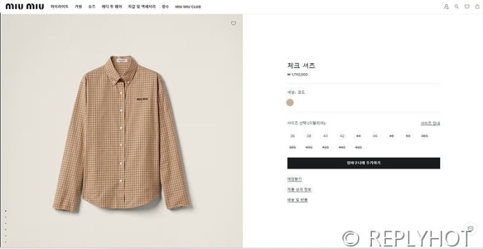 미우미우 체크 셔츠 [매장가 174만원대] > 미우미우