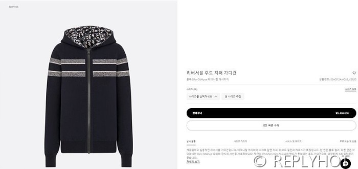 디올 리버서블 후드 양면 지퍼 가디건 > 디올