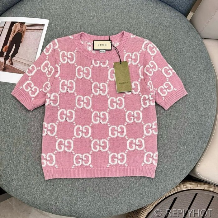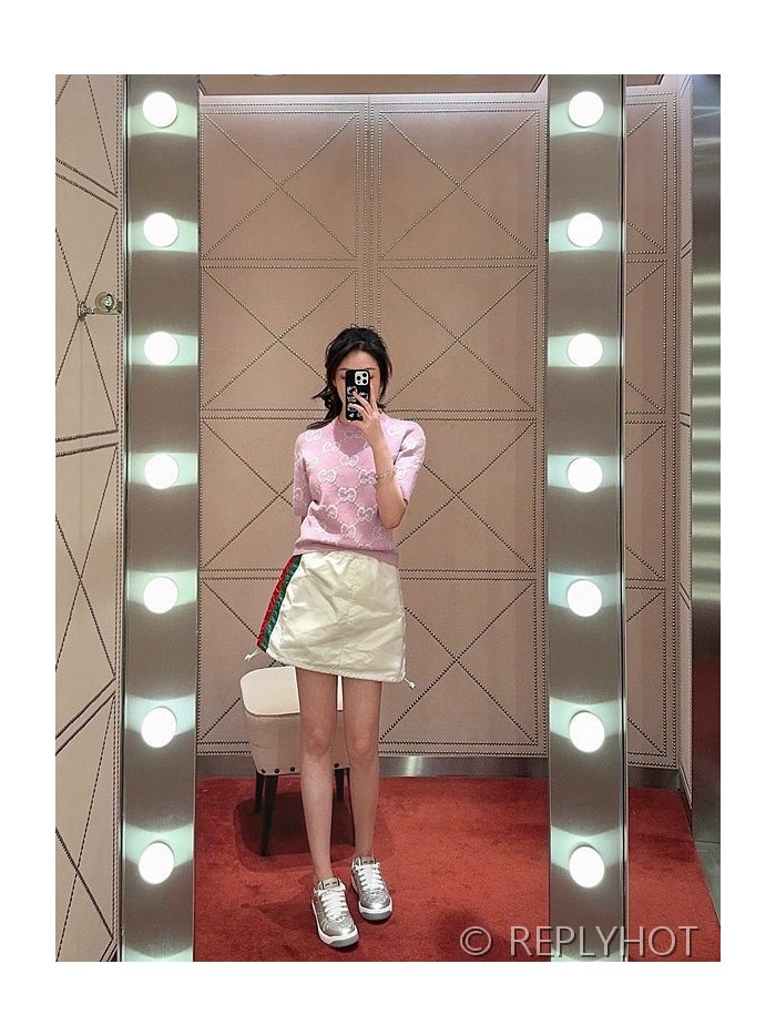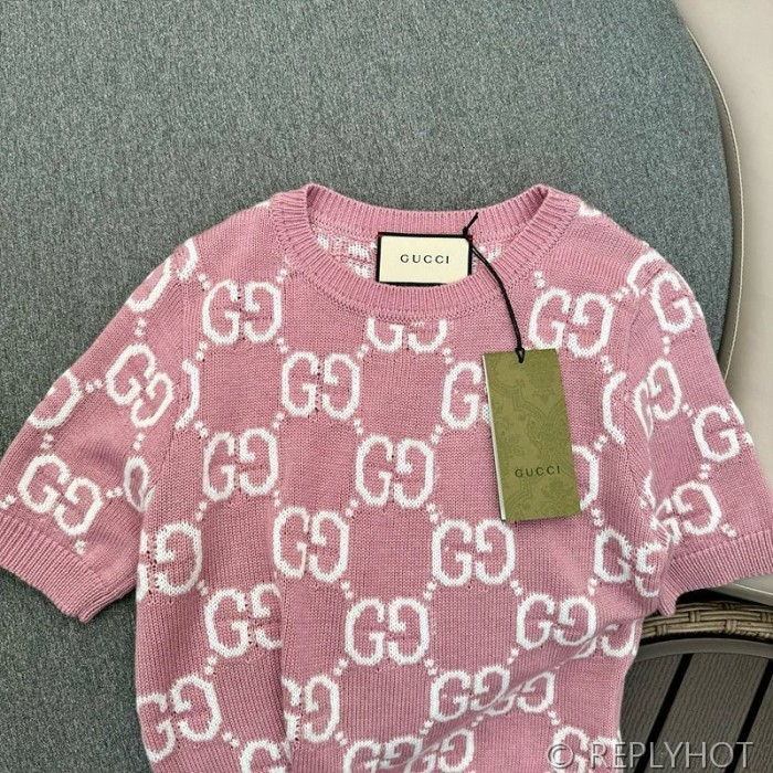 구찌 핑크 다이아몬드GG 자카드 반팔니트 > 구찌