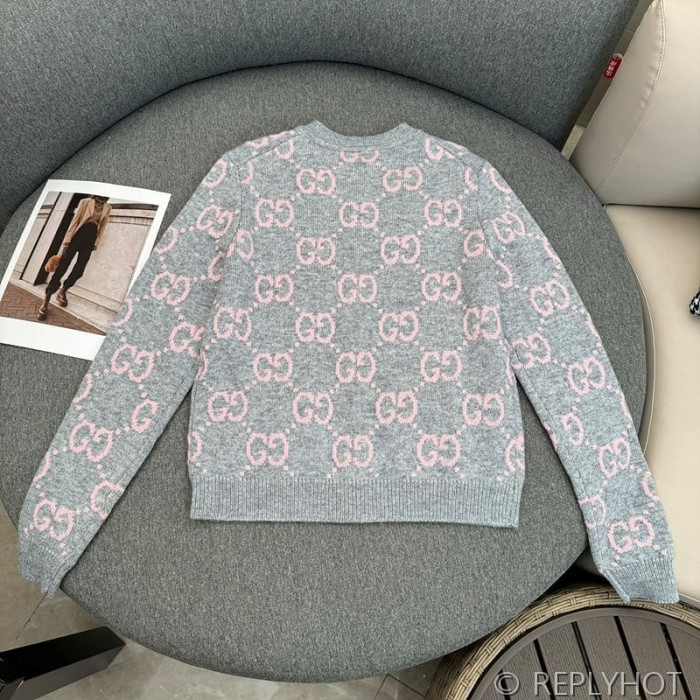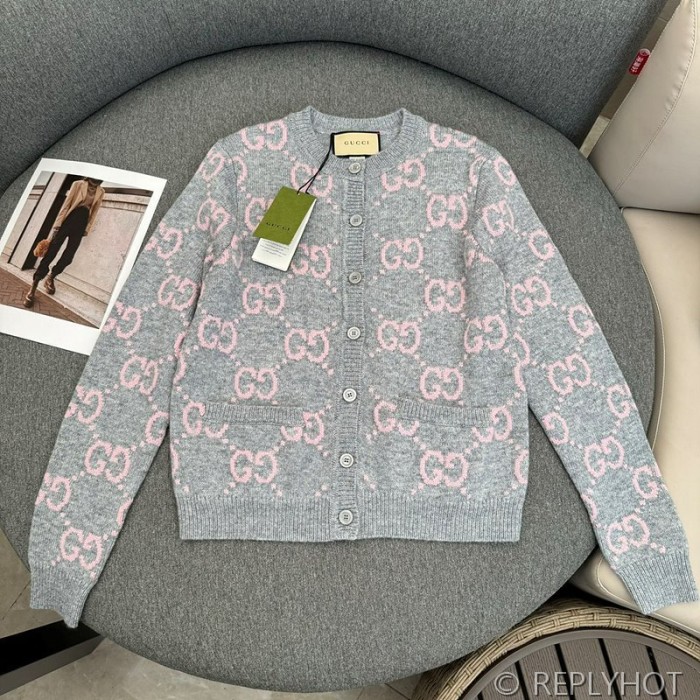 구찌 그레이 핑크 GG 자카드 니트 가디건 > 구찌