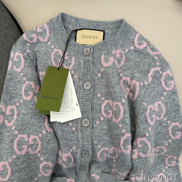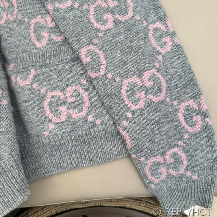 구찌 그레이 핑크 GG 자카드 니트 가디건