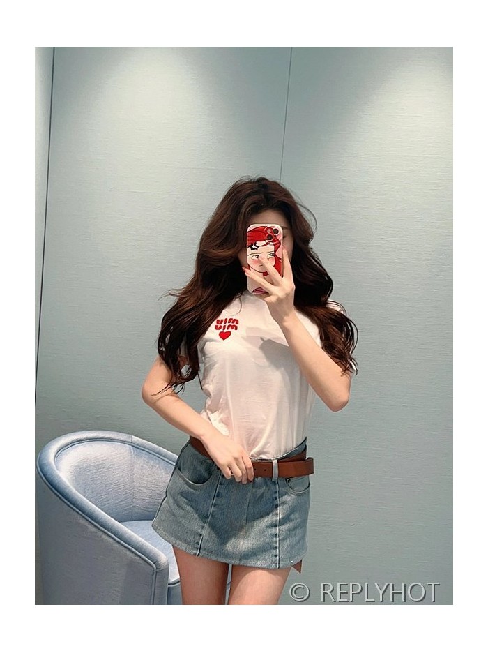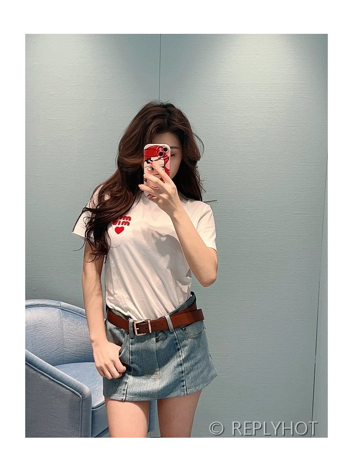 미우미우 러브로고 자수 티셔츠 2color > 미우미우